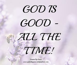 God is good. All the time. Even when you’re lying on a storeroom floor covered in dust with a bee sting swelling your face. Especially then.