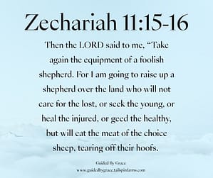 Once again, Zechariah used a shepherd’s equipment, but this time to act out the role of a godless and cruel shepherd,