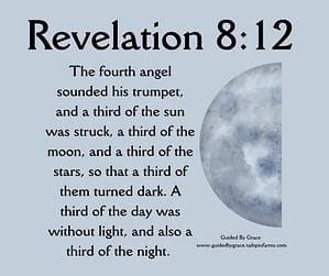And the fourth angel sounded, and the third part of the sun was smitten, and the third part of the moon, and the third part of the stars; so as the third part of them was darkened, and the day shone not for a third part of it, and the night likewise.