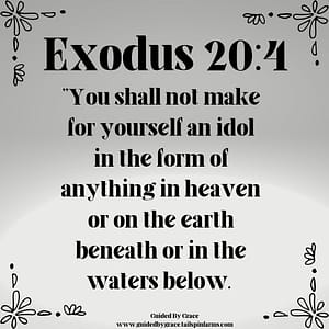 Israel was not to make any kind of images or idols representing false gods (Deuteronomy 4:19, 23-28). In fact, they were not supposed to make any images of the Lord God Himself. He is too great to be represented by anything made by humans. For Christians today, the second commandment still means that they must not make images of God or creatures for the purpose of worship, prayer or any sort of spiritual help (Deuteronomy 4:15-16). The principle behind this command applies equally to all three persons of the Trinity – Father, Son and Holy Spirit.