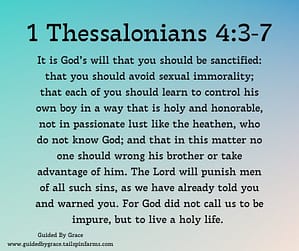 It is God’s will that you should be sanctified: that you should avoid sexual immorality; 4 that each of you should learn to control your own body in a way that is holy and honorable, 5 not in passionate lust like the pagans, who do not know God; 6 and that in this matter no one should wrong or take advantage of a brother or sister. The Lord will punish all those who commit such sins, as we told you and warned you before. 7 For God did not call us to be impure, but to live a holy life.