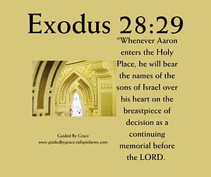 And Aaron shall bear the names of the children of Israel in the breastplate of judgment upon his heart, when he goeth in unto the holy place, for a memorial before the Lord continually.