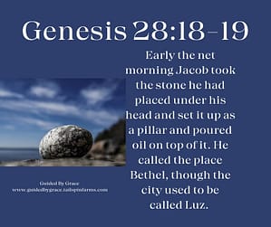 And Jacob rose up early in the morning, and took the stone that he had put for his pillows, and set it up for a pillar, and poured oil upon the top of it. 19 And he called the name of that place Bethel: but the name of that city was called Luz at the first.