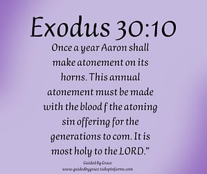 And Aaron shall make an atonement upon the horns of it once in a year with the blood of the sin offering of atonements: once in the year shall he make atonement upon it throughout your generations: it is most holy unto the Lord.