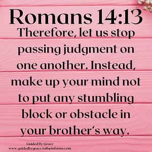 Let us not therefore judge one another any more: but judge this rather, that no man put a stumblingblock or an occasion to fall in his brother’s way.