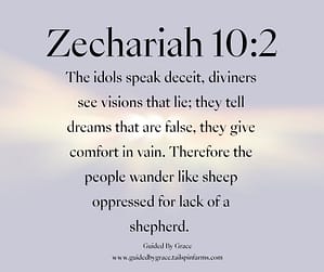 Because the people had no true shepherd to lead them in the right paths – the paths of trust in God – they turned to false gods and relied on idols, fortune tellers, and other occult (devil and demon worship) practices. Pastors and teachers who destroy confidence in the Bible by denying that it is fully inspired by God and infallible (certain not to fail) are guilty of indirectly influencing people to turn to ungodly practices in search of guidance.