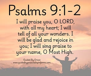 I will praise thee, O Lord, with my whole heart; I will shew forth all thy marvellous works. I will be glad and rejoice in thee: I will sing praise to thy name, O thou most High.