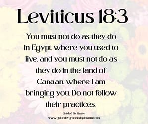 God’s people have always been tempted to imitate the behavior and moral standards of the societies in which they live. That is why God commands His people to accept His laws as the only standard for determining right and wrong. Our lives must never be guided by the ungodly practices of any culture. God’s character – as revealed in His Word – is the only true basis and standard for all moral or spiritual conduct.
