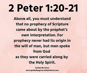 No prophecy in Scripture came about by the writer’s own ideas or reasoning, but it came from the Holy Spirit.