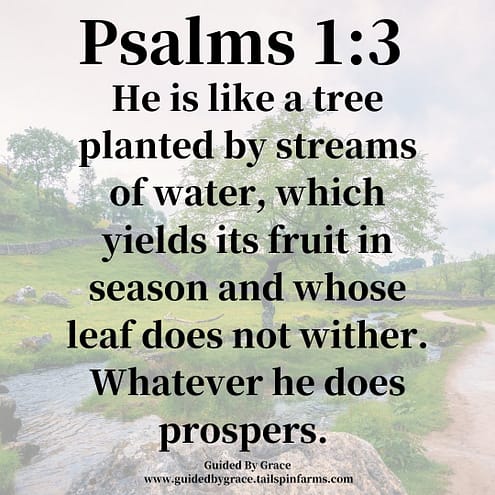 Those who faithfully pursue a deeper relationship with, and a better understanding of God’s Word will find guidance from the Holy Spirit. Since (in the Bible) water often represents God’s Spirit (John 7:38-39), those who spend time in His Word and follow His instructions will also receive from the Spirit spiritual refreshment and power for life, much like drinking water that satisfies a thirst. The phrase “whatever he does prospers” does not mean that problems or failures will never occur. It means that a godly person will know God’s purposes, experience His presence, and receive His peace. That is to say, that person will live in God’s plans for his or her life in a fulfilling way (3 John 1:2).