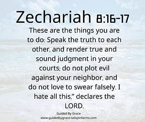 These are the things that ye shall do; Speak ye every man the truth to his neighbour; execute the judgment of truth and peace in your gates: 17 And let none of you imagine evil in your hearts against his neighbour; and love no false oath: for all these are things that I hate, saith the Lord.