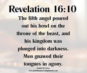And the fifth angel poured out his vial upon the seat of the beast; and his kingdom was full of darkness; and they gnawed their tongues for pain,