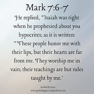 He answered and said unto them, Well hath Esaias prophesied of you hypocrites, as it is written, This people honoureth me with their lips, but their heart is far from me. 7 Howbeit in vain do they worship me, teaching for doctrines the commandments of men.
