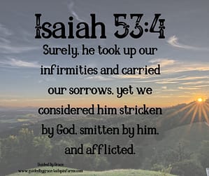 Surely he hath borne our griefs, and carried our sorrows: yet we did esteem him stricken, smitten of God, and afflicted.