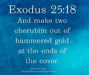 These were carvings of the angelic beings who hover around God’s throne in heaven (Hebrews 9:5; Revelation 4:6; Revelation 4:8). They symbolized God’s presence and kingship among His people on earth (1 Samuel 4:4; 2 Samuel 6:2; 2 Kings 19:15). Putting the cherubim on the ark was to remind the people of how God would remain with them as long as they followed His instructions about the blood sacrifice and continued to obey His commandments.