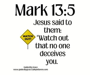Jesus’ teaching from the Mount of Olives contains repeated warnings that, as the end draws near, His people must constantly be alert to the danger of religious deception. Jesus gives the following challenges: “Watch out” (Mark 13:5), “You must be on your guard” (Mark 13:9), “So be on your guard” (Mark 13:23), “Be on guard! Be alert!” (Mark 13:33), “Therefore, keep watch” (Mark 13:35), and “Watch!” (Mark 13:37). These warnings alert us that many unbiblical beliefs and teachings will be popular in churches. More than ever, true Christians must know and obey God’s Word (Matthew 24:5), which requires them to spend time reading and studying the Bible and then apply it to their lives (James 1:22).