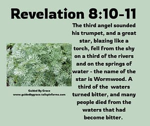 And the third angel sounded, and there fell a great star from heaven, burning as it were a lamp, and it fell upon the third part of the rivers, and upon the fountains of waters; 11 And the name of the star is called Wormwood: and the third part of the waters became wormwood; and many men died of the waters, because they were made bitter.